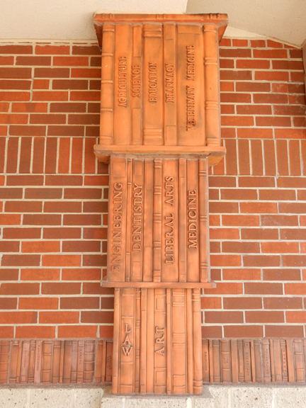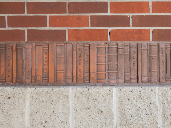 Fortunately I had my camera along. When my family all hopped out of the car to visit the facilities, I hopped out of the car too…to photograph the really cool book finials, pillars, and brick borders.